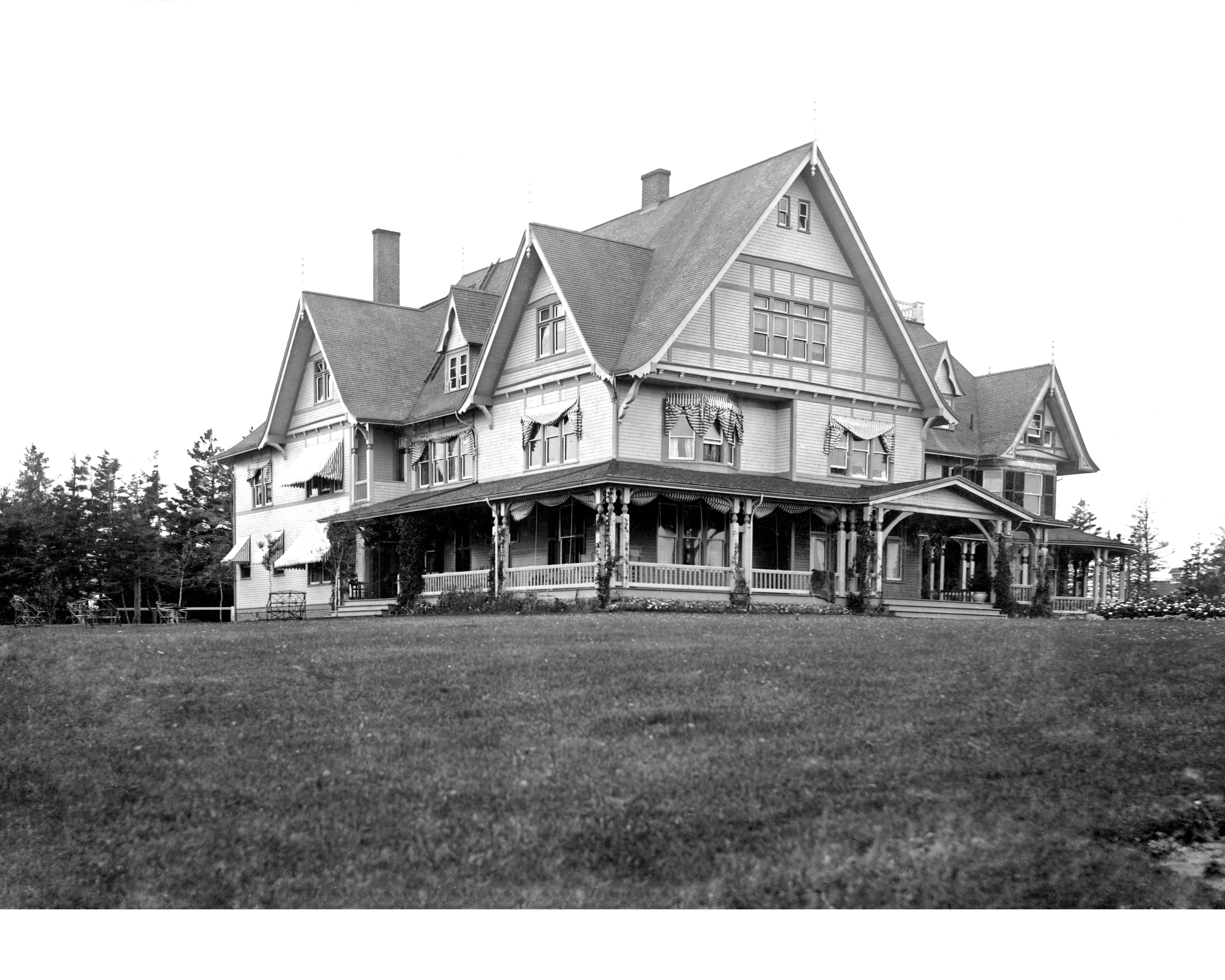 Dalvay by the Sea is a stunning Queen Anne Revival Victorian home. Though it has passed through several noble hands, its old-world grandeur remains preserved. A grand staircase greets guests upon entry and flames dance inside huge fireplaces constructed of quarried blocks of the Island’s red hued sandstone. Wooden floors and beams, a veranda wrapping around the front of the property overlooking the manicured grounds, and a horse-drawn carriage are among the original features connecting Dalvay’s past to its present.